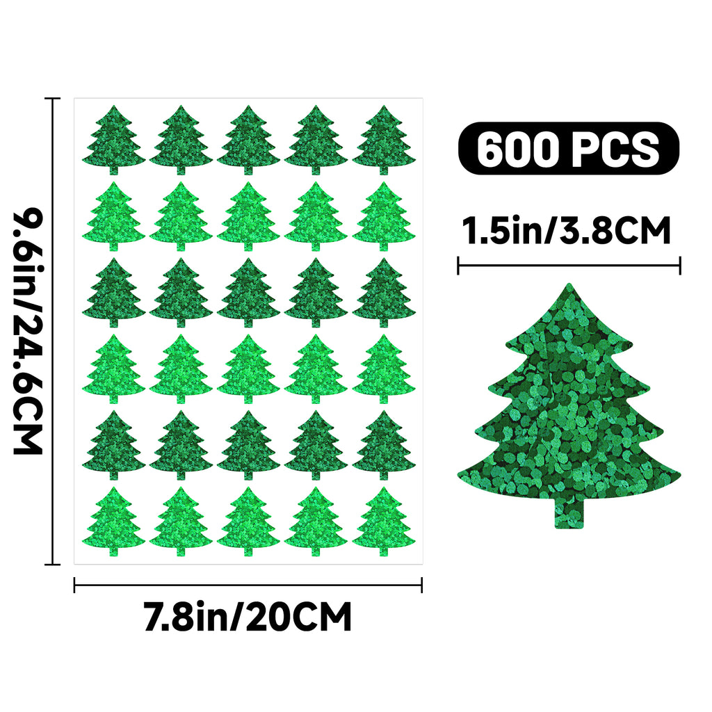Alynta 600Pcs Christmas Tree Stickers - Holographic Christmas Envelope Stickers 1.5 Inch Waterproof Self-Adhesive Xmas Tree Labels Sticker Xmas Sticker for Envelope Seals Cards Party Decorations