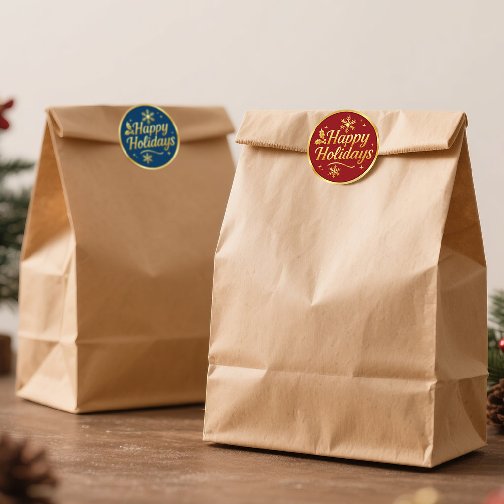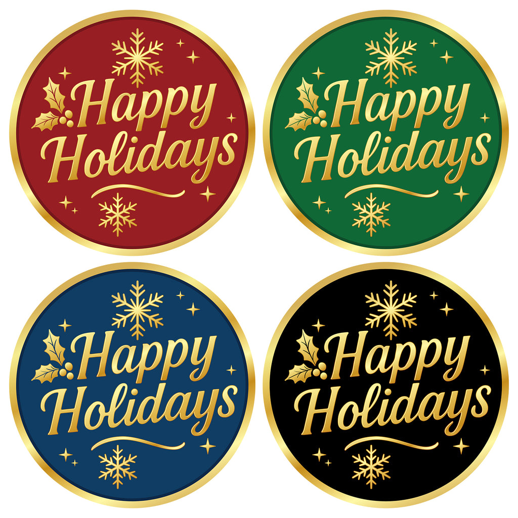 [UNIQUE DESIGN]-Unique design by Hailey designer. Happy holidays stickers are designed with gold foil snowflakes and holly leaves pattern, printing "Happy Holidays", cute and festive. Great for Christmas and holiday gift wrapping.